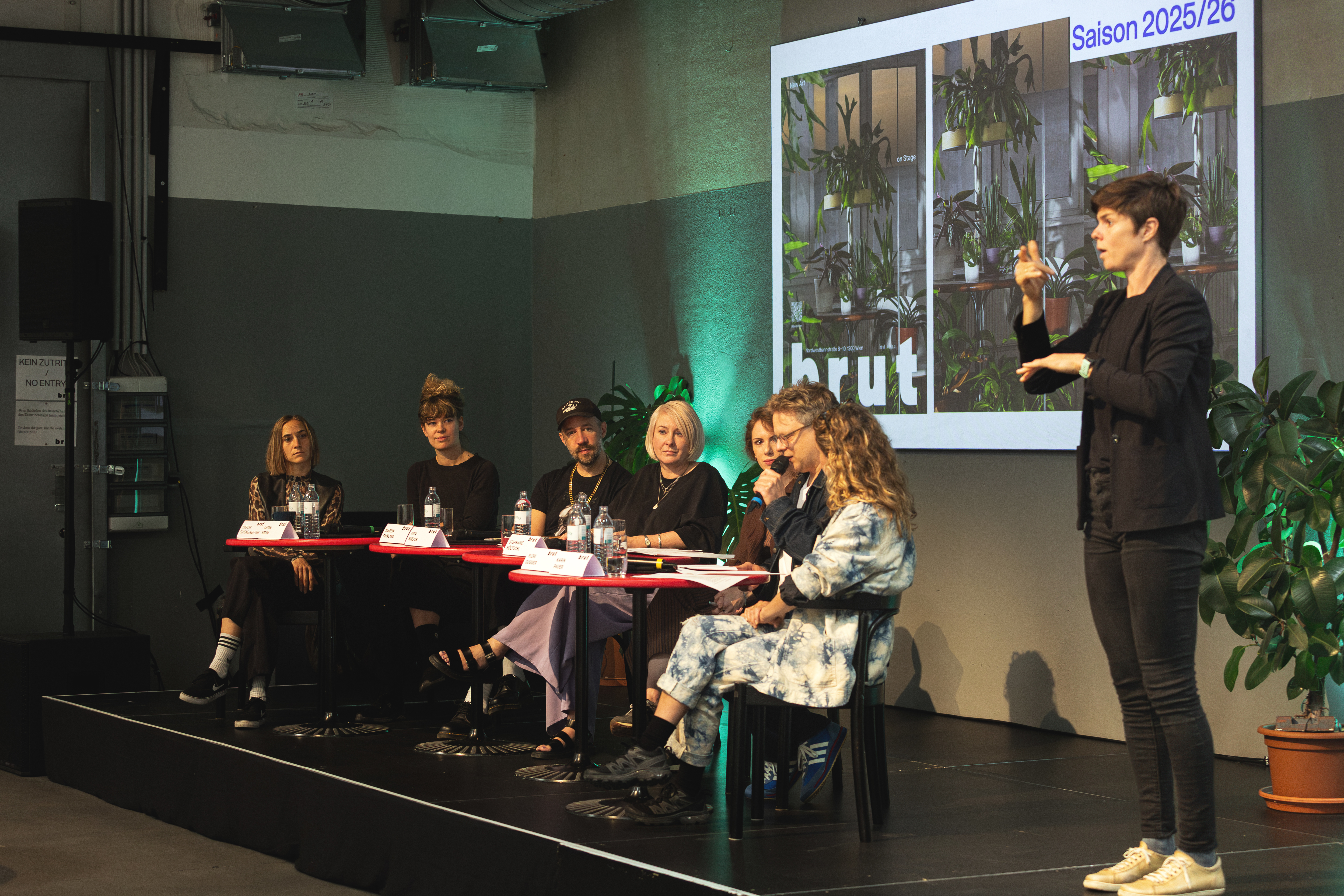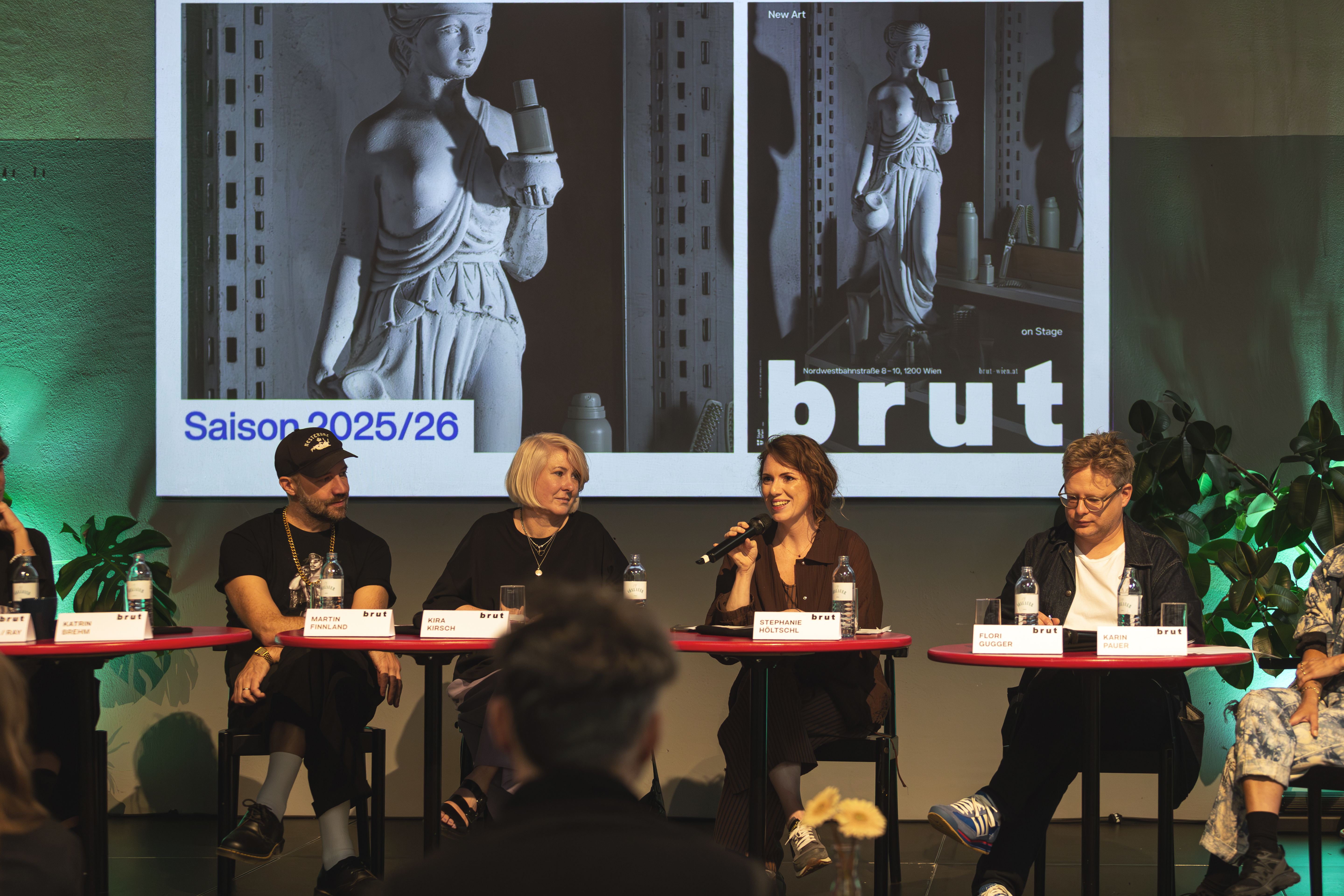 17. September 2025 Am 17. September 2025 präsentierten Kira Kirsch, Stephanie Höltschl, Flori Gugger und Katrin Brehm gemeinsam mit den Künstler*innen Karin Pauer, Theresa Scheinecker / Ray und Martin Finnland das Programm der Saison 2025/26 – die finale Spielzeit im brut nordwest.